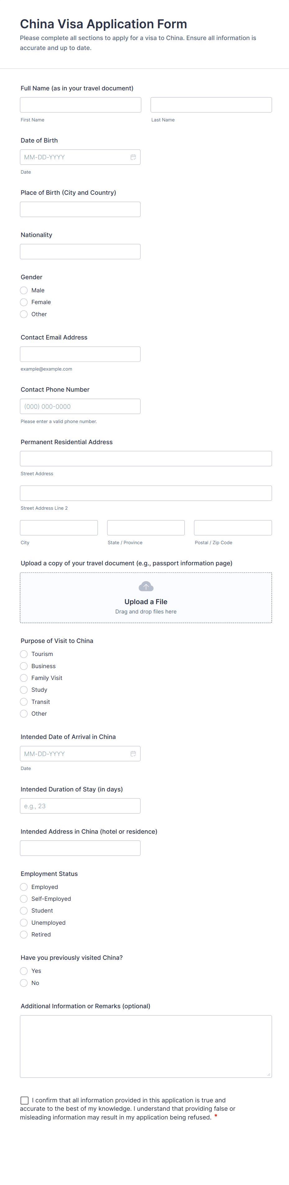 • For job applications, include fields for personal information, education, work experience, references, and file uploads for resumes or cover letters.