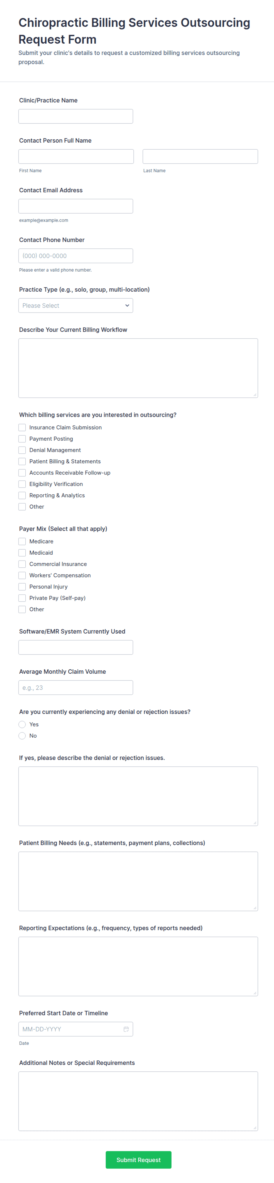 Chiropractic forms are online forms used by chiropractor offices to collect patient information, e-signatures, payments, and more. With these free Chiropractic Forms from Jotform, you can quickly start collecting form responses on any device. Select a form, customize it to perfectly match your needs, and share or embed it to start gathering submissions from your clients.