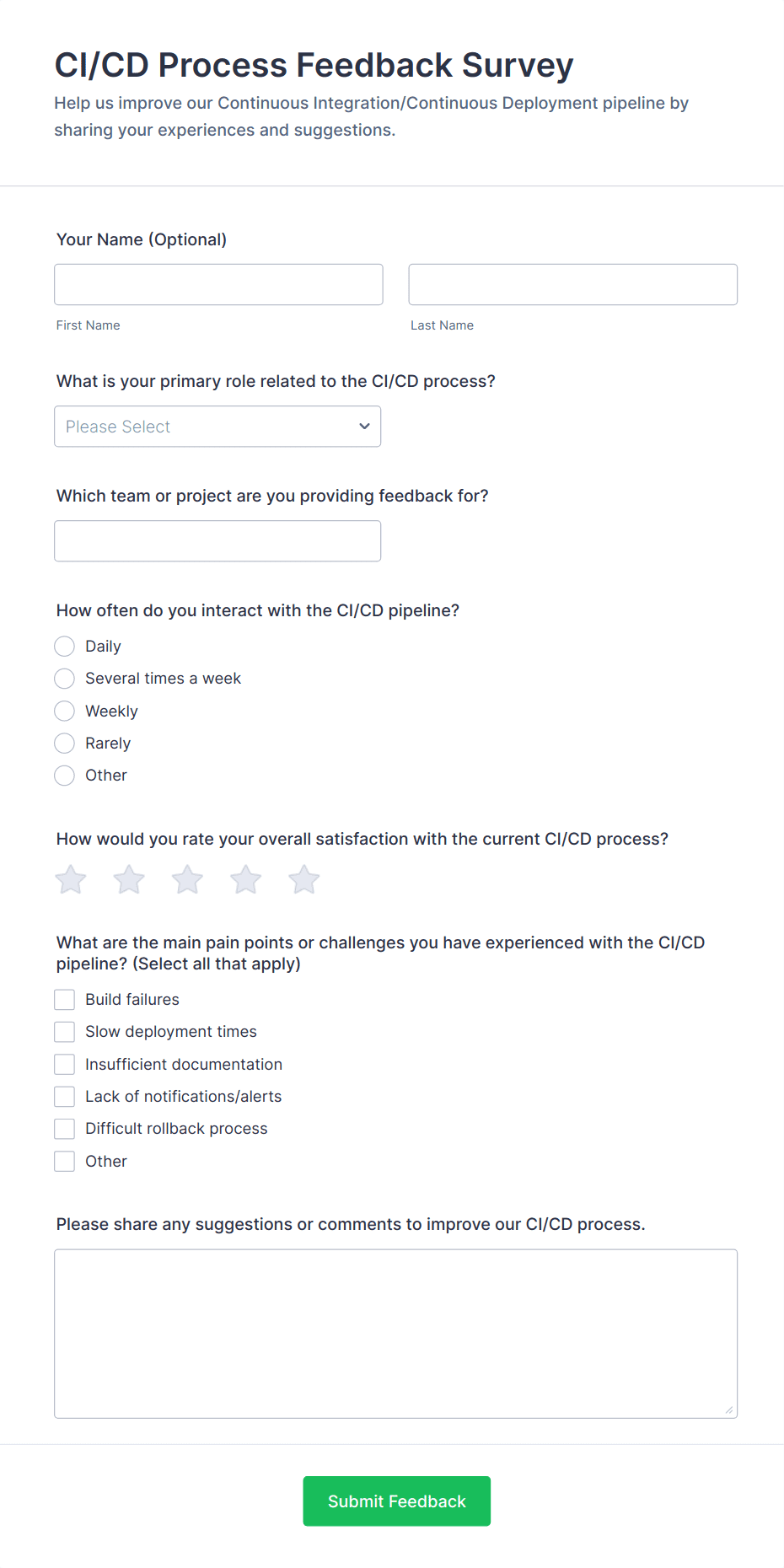 AI Agent Chat Interaction Feedback Form helps product and support teams collect user satisfaction scores and comments about AI chats, turning feedback into insights to improve AI experiences.