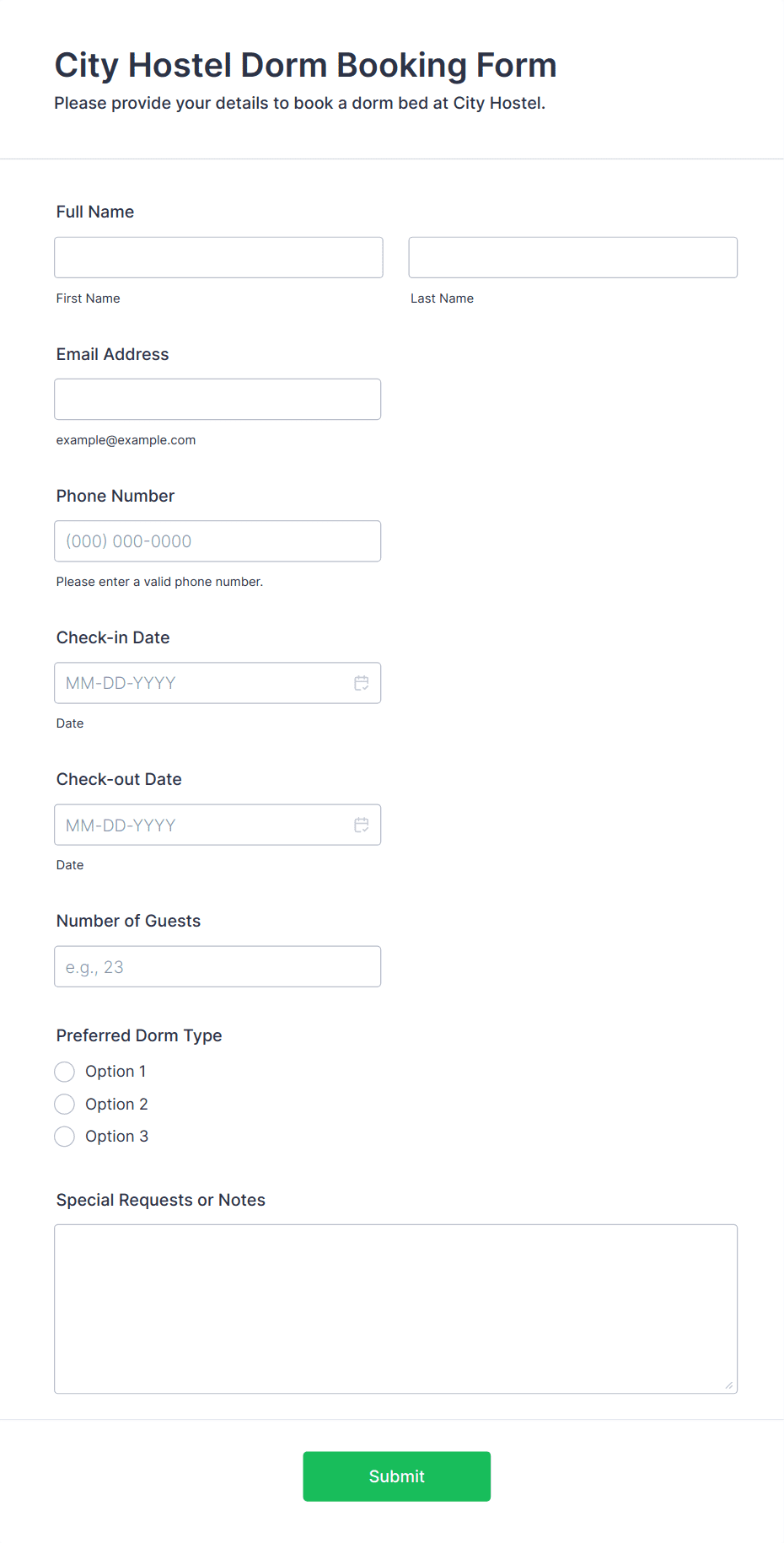 Hotel Booking Forms can be tailored to address a wide range of booking scenarios, each with its own requirements and benefits. Here’s how these forms can be adapted to solve specific problems and serve different users: