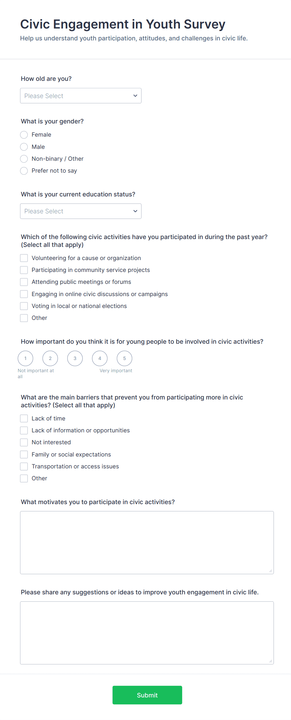 Creating an effective Engagement Survey Form with Jotform is a straightforward process that empowers you to gather valuable feedback tailored to your specific audience—whether employees, customers, event attendees, or volunteers. Here’s a step-by-step guide to designing and managing your engagement survey using Jotform’s powerful features: