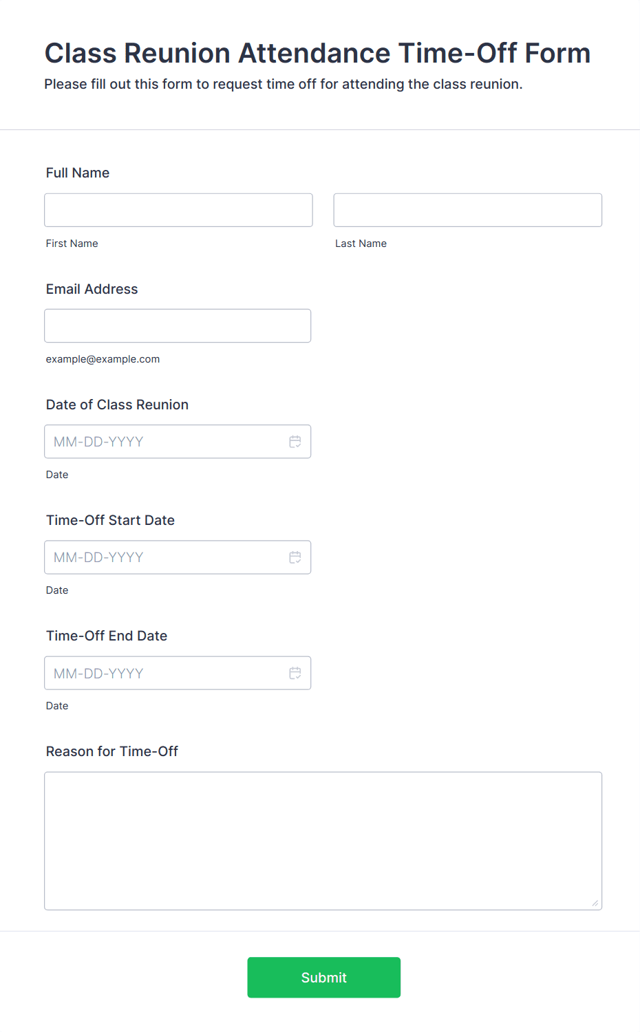 • Content and fields vary based on event type: For example, a conference form may include session selection and company details, while a wedding RSVP form might ask for meal preferences and plus-one information.