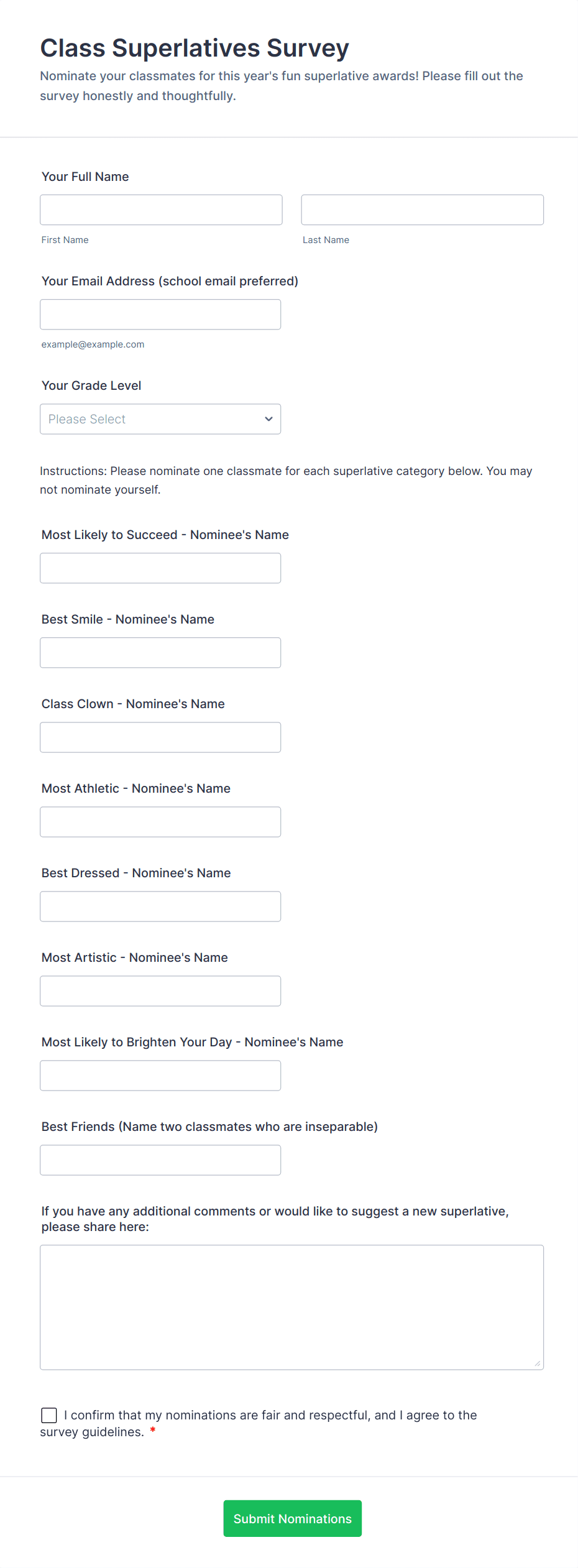 - For student or parent surveys, add questions about satisfaction, communication, and support services.