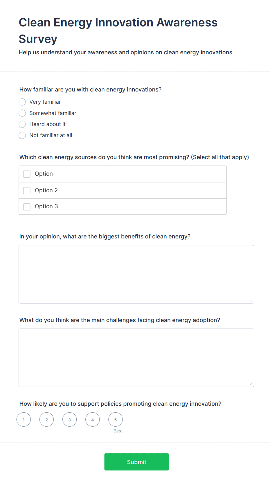 Survey templates are pre-designed forms that help individuals and organizations collect feedback, opinions, or data from a target audience. These templates are widely used for a variety of purposes, such as customer satisfaction surveys, employee engagement assessments, market research, event feedback, and academic studies. By providing a structured set of questions, survey templates streamline the process of gathering valuable insights, making it easier to analyze trends, measure satisfaction, and make informed decisions. Whether you’re a business owner, HR professional, educator, or researcher, survey templates offer a quick and effective way to reach your audience and collect actionable information.