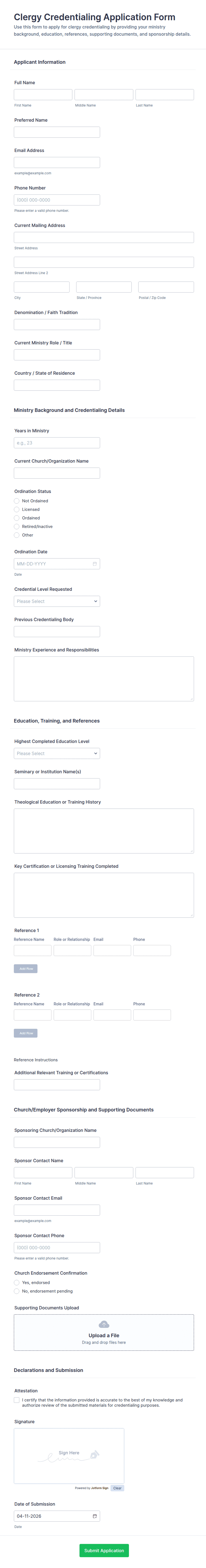 Churches use online forms for new member registration, donations, event and meeting planning, and scheduling visits to your place or worship. Browse one of our online church form templates that will help you gather information of any member, manage volunteer applications, and collect member information and donations easily. Every one of these church form templates are fully customizable and easy to edit.