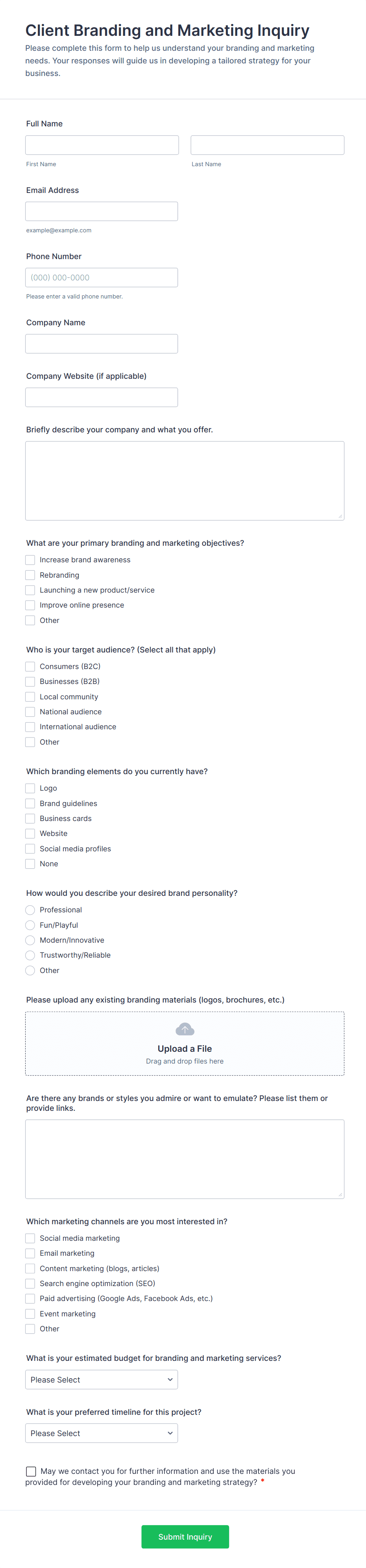 3. What information should be included in an inquiry form?