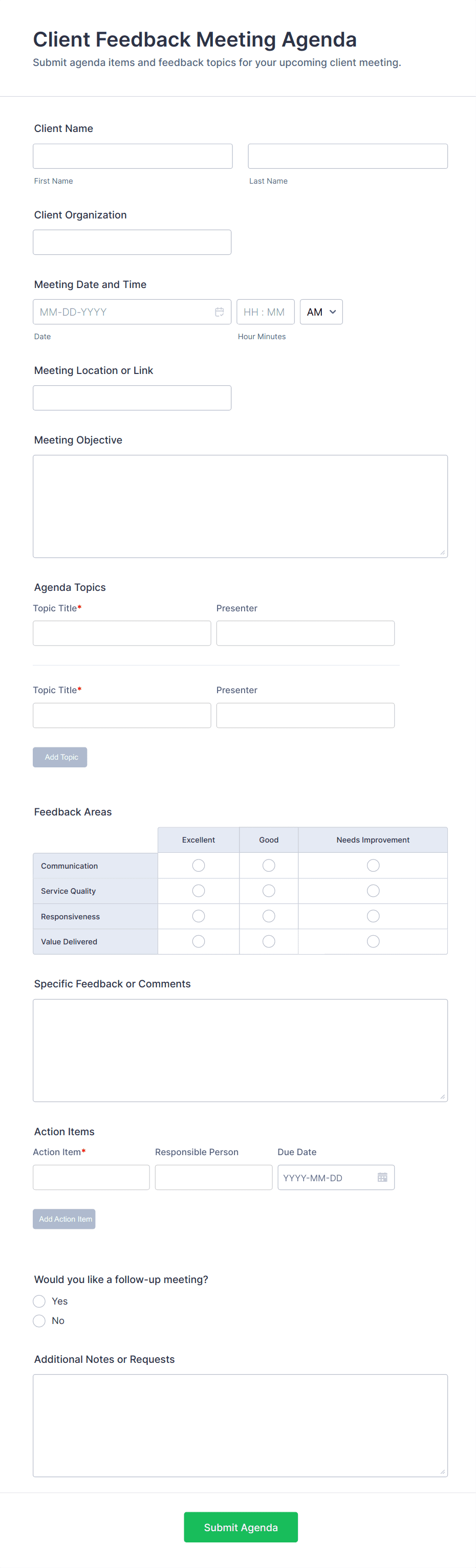 3. What information should be included in a meeting form?