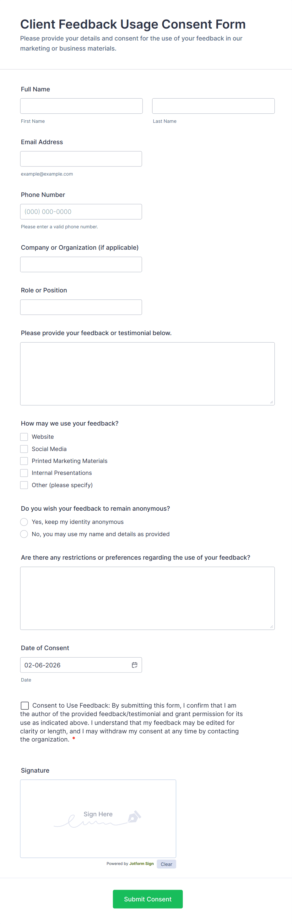- Integrate with Jotform Tables for secure storage and easy access to consent records.
