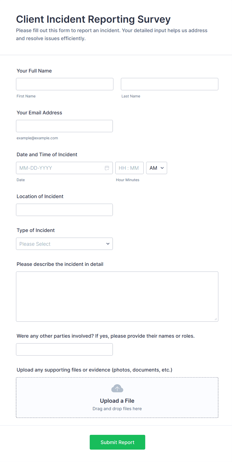 An Incident Report Template is a standardized form used to document details surrounding an incident, accident, or unusual event within an organization or specific context.