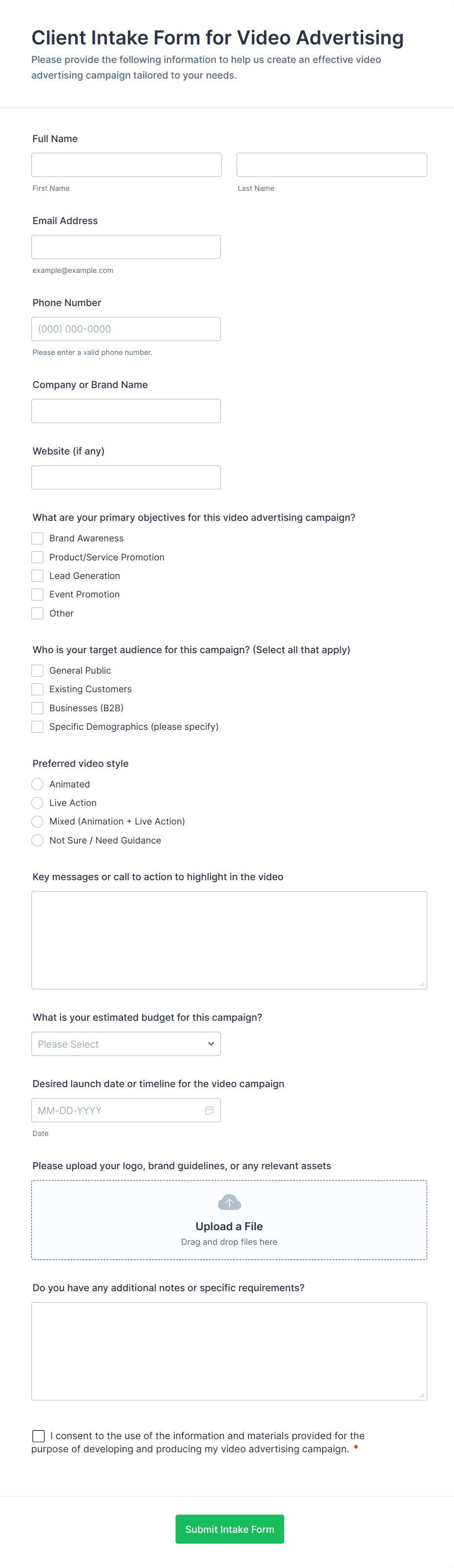 This form can be used for basic advertising and marketing.
