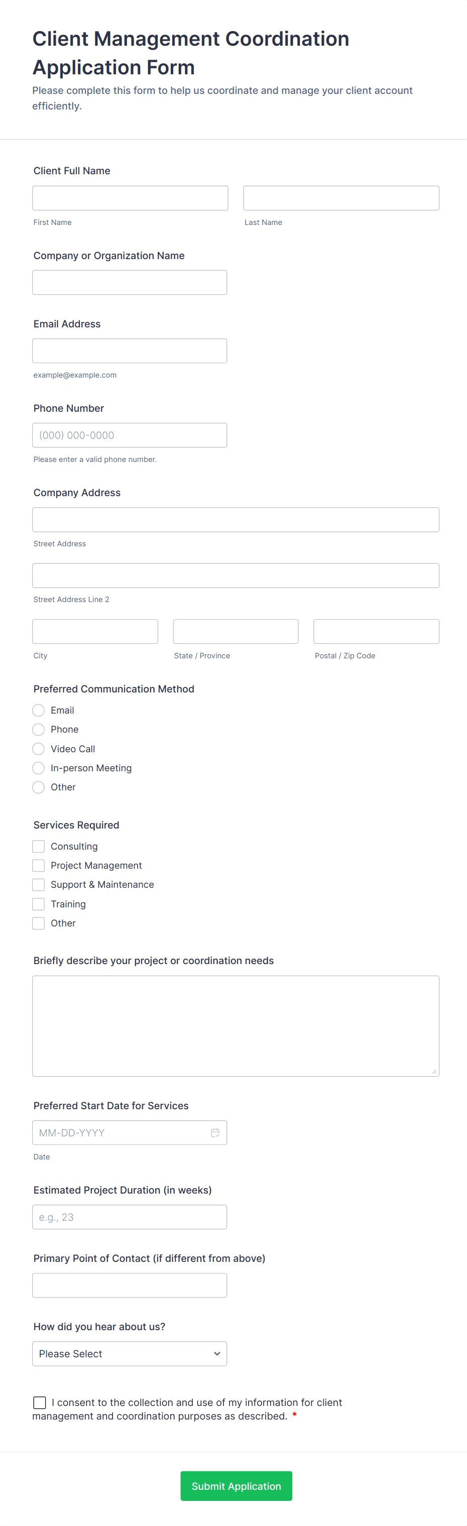 • Rental Applications: Collect financial information, rental history, and consent for background checks.