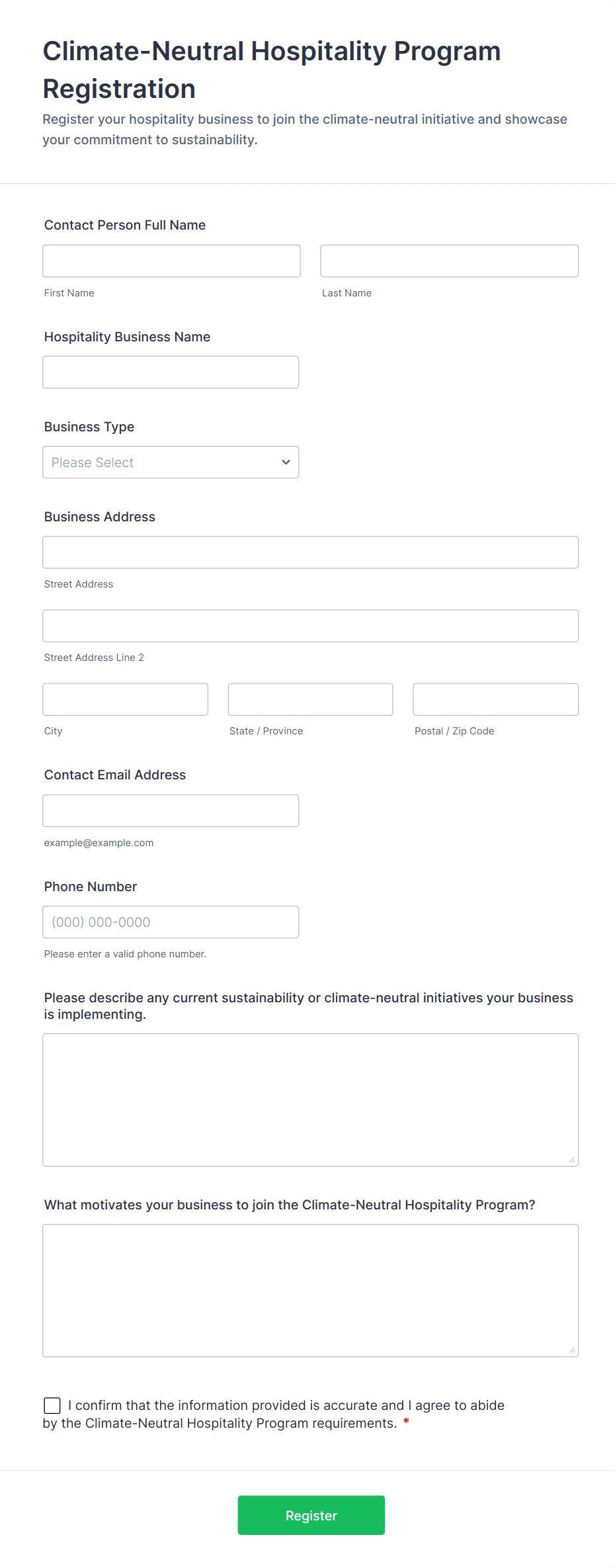 Hospitality Application Form