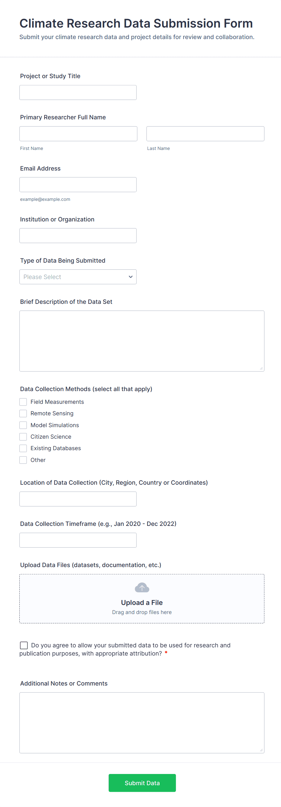 In addition to files, these forms can collect personal details, project information, comments, and any other data relevant to the submission.