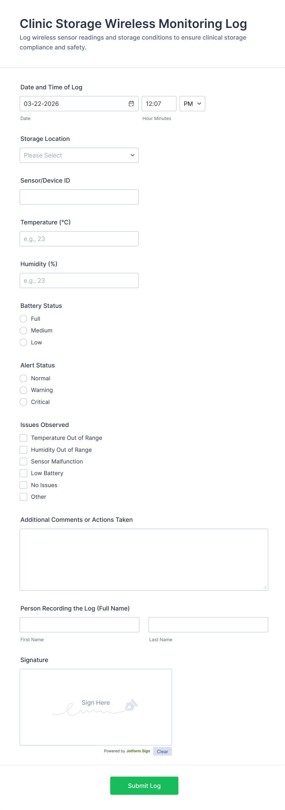 - Signature fields for accountability.