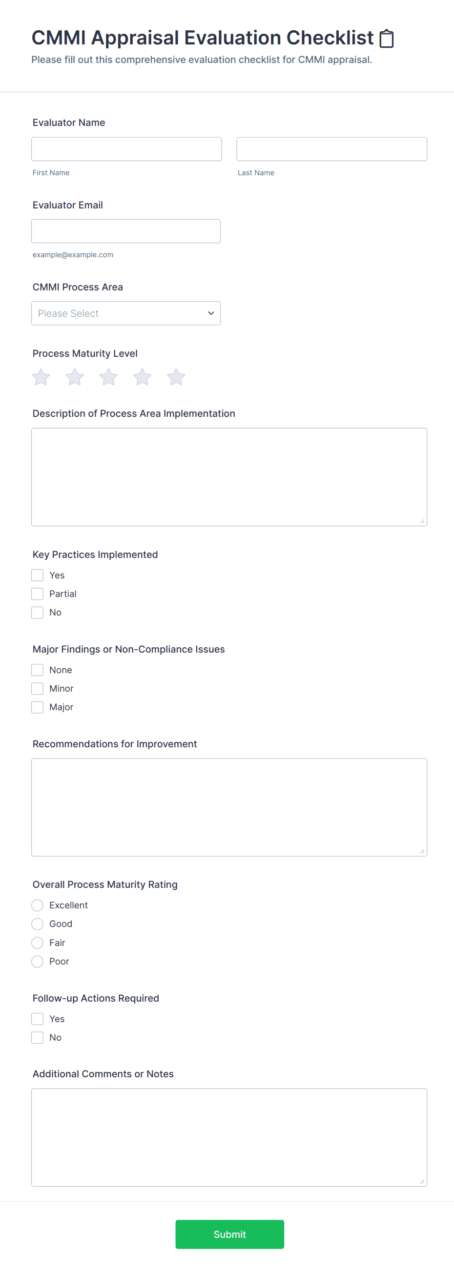 Checklist forms usually contain a list of tasks or items, checkboxes for completion, and may include fields for names, dates, comments, signatures, or supporting documentation.