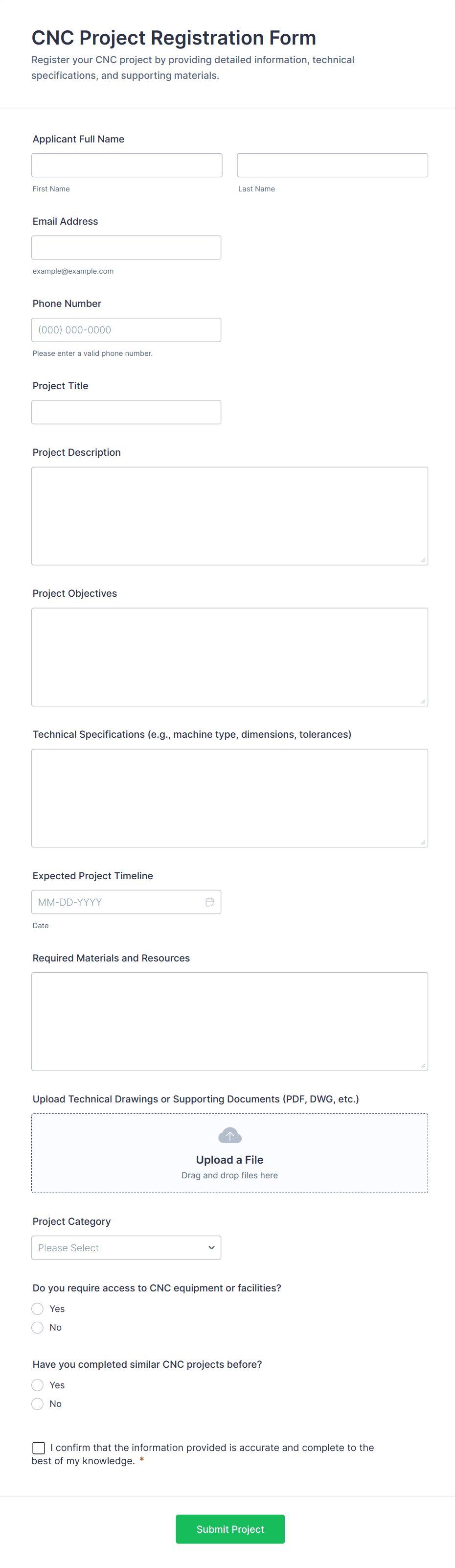 Manufacturing forms are online forms used to collect manufacturing information like product and supply orders, inventory reports, feedback, applications, and more. With these ready-made Manufacturing Forms from Jotform, you can save time and paper by switching from messy paper forms to efficient only forms you can fill out on any device.