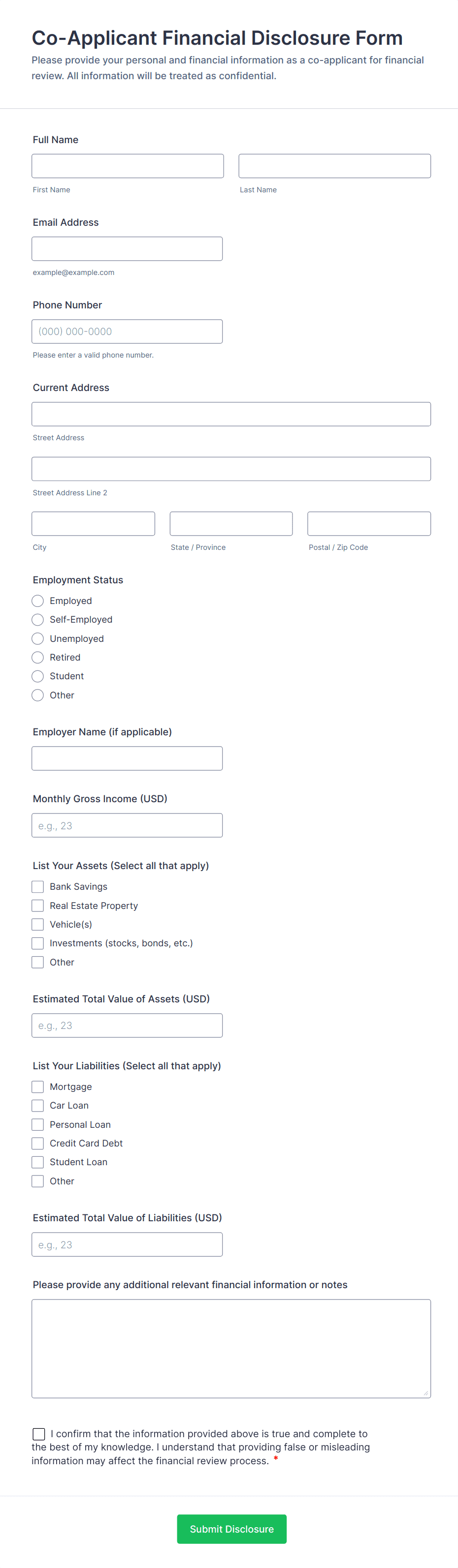 - Co-applicant or co-signer information (if applicable)
