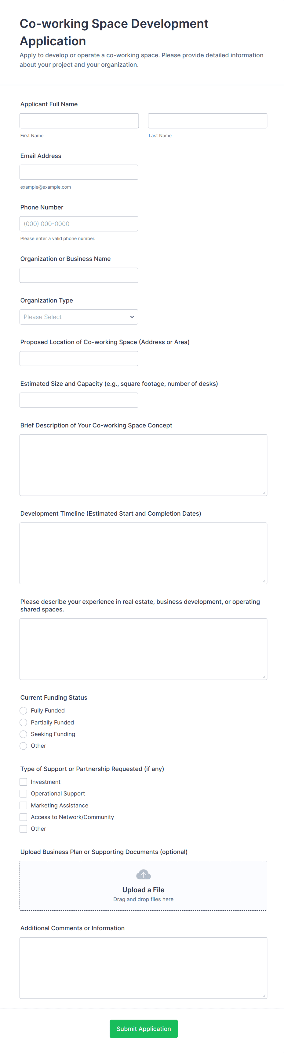 • For job applications, include fields for personal information, education, work experience, references, and file uploads for resumes or cover letters.