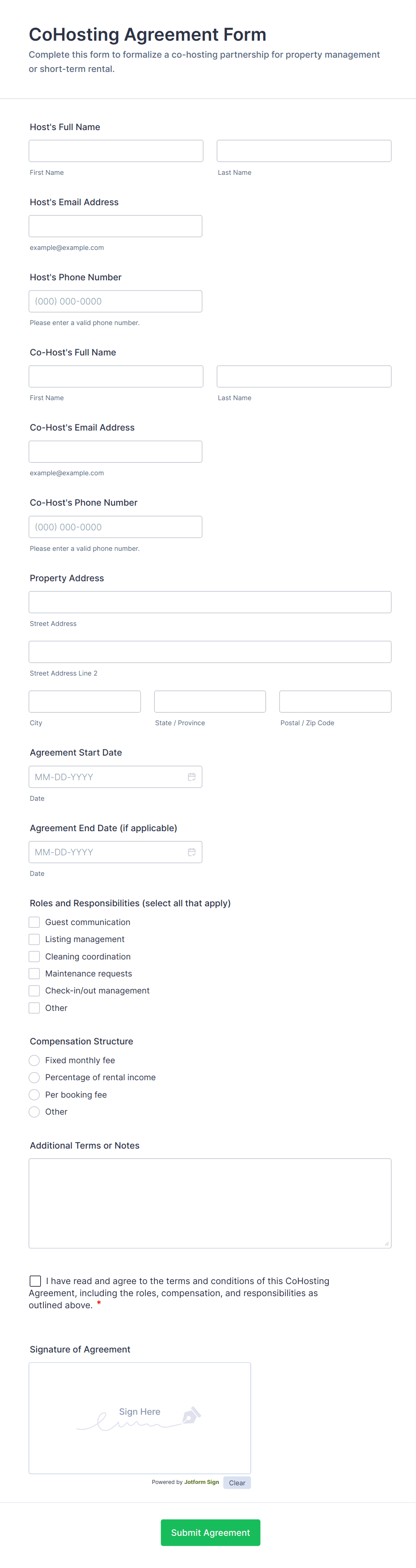 The form templates here are for informational purposes only. Jotform is not providing legal, financial, or other advice, or implying that the forms are legally valid in all or any jurisdictions. Before using any such form, consult an attorney and/or other applicable professionals to make sure that the form meets your needs, legally and otherwise.