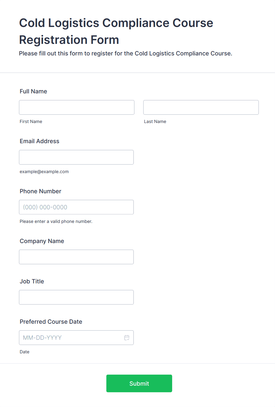 • Corporate Training: Collect employee ID, department, and supervisor approval.