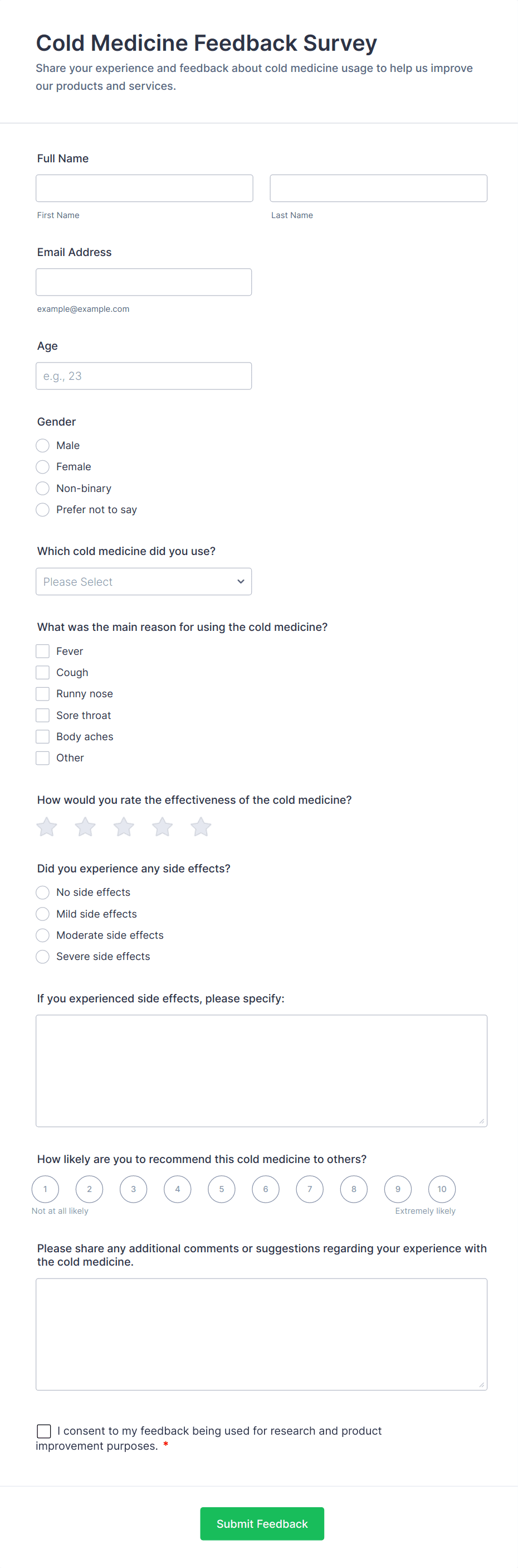 • Beta feedback forms may require fields for bug reporting and suggestions, while ongoing improvement surveys might focus on long-term user experience.
