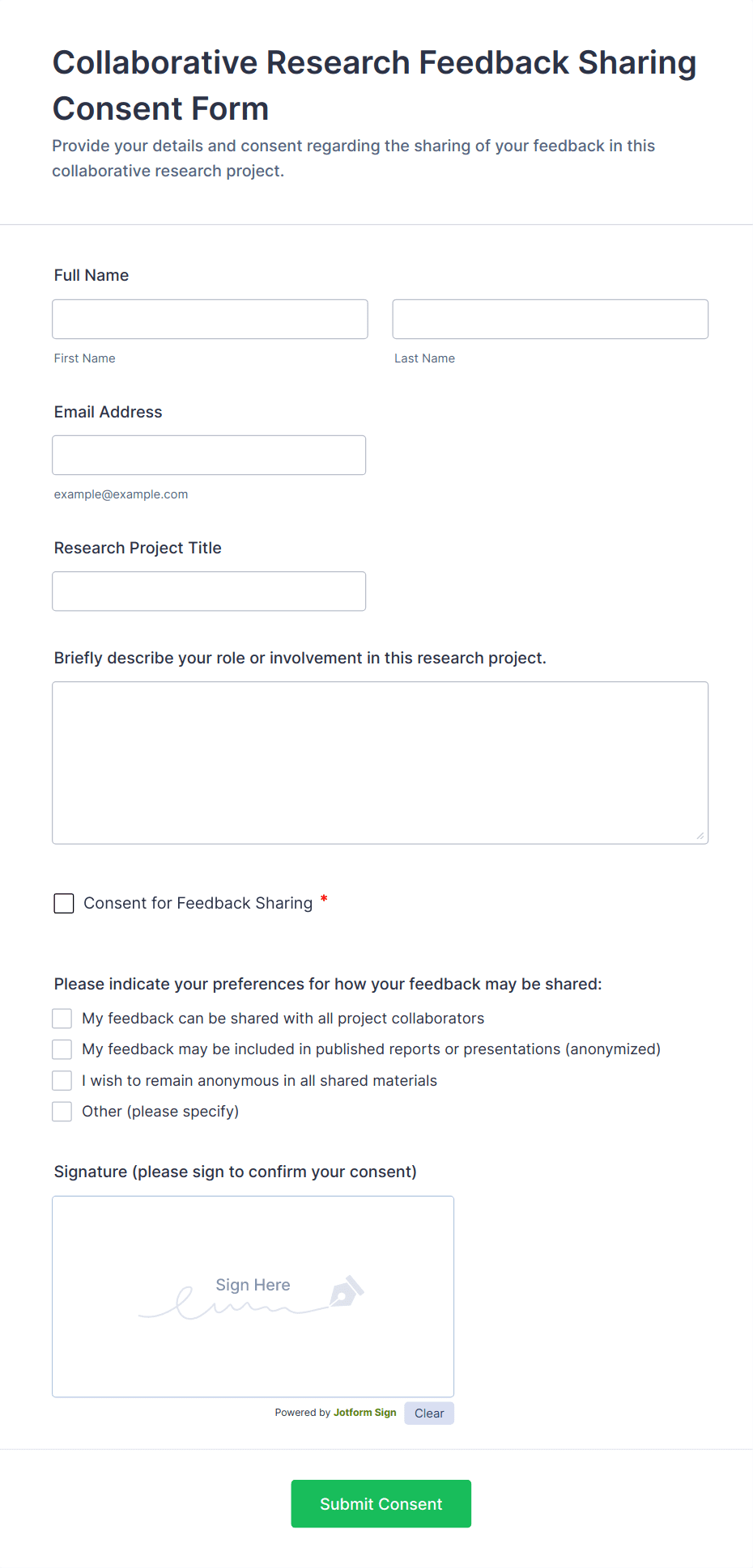By following these steps, you can create a Sharing Consent Form that is clear, compliant, and tailored to your specific needs, ensuring you collect and manage permissions efficiently and securely.
