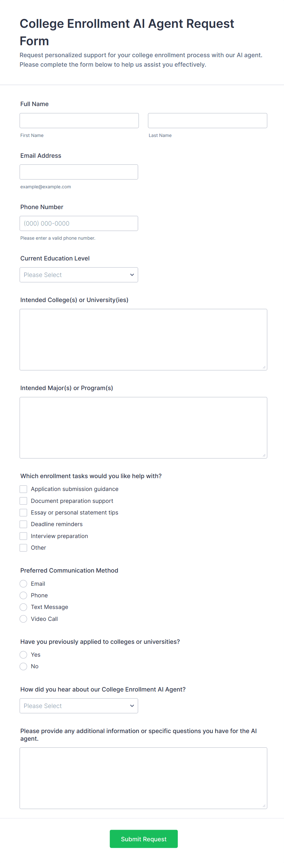 • For specialized use cases, include fields for document uploads (e.g., transcripts, immunization records) or payment collection (for tuition or registration fees).