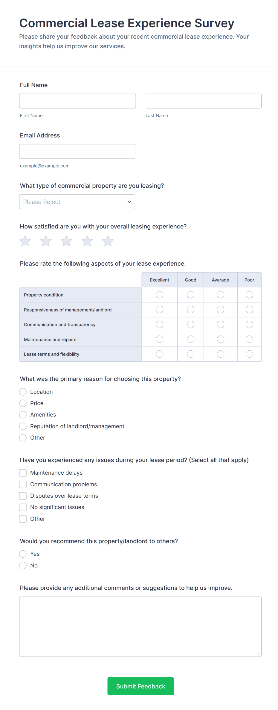 For employee surveys, consider adding anonymity options; for customer surveys, include contact fields if follow-up is needed.