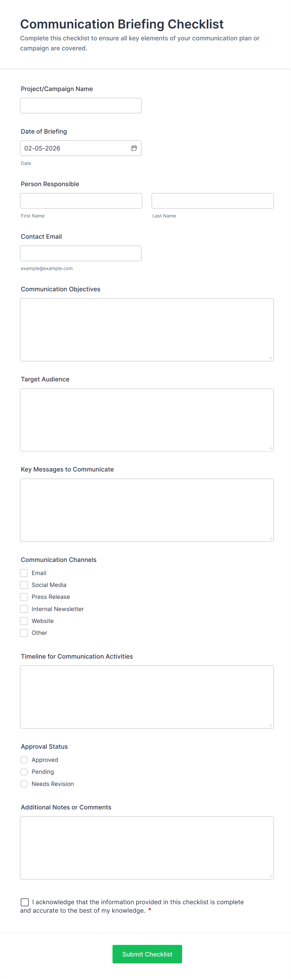3. What information is typically included in a checklist form?