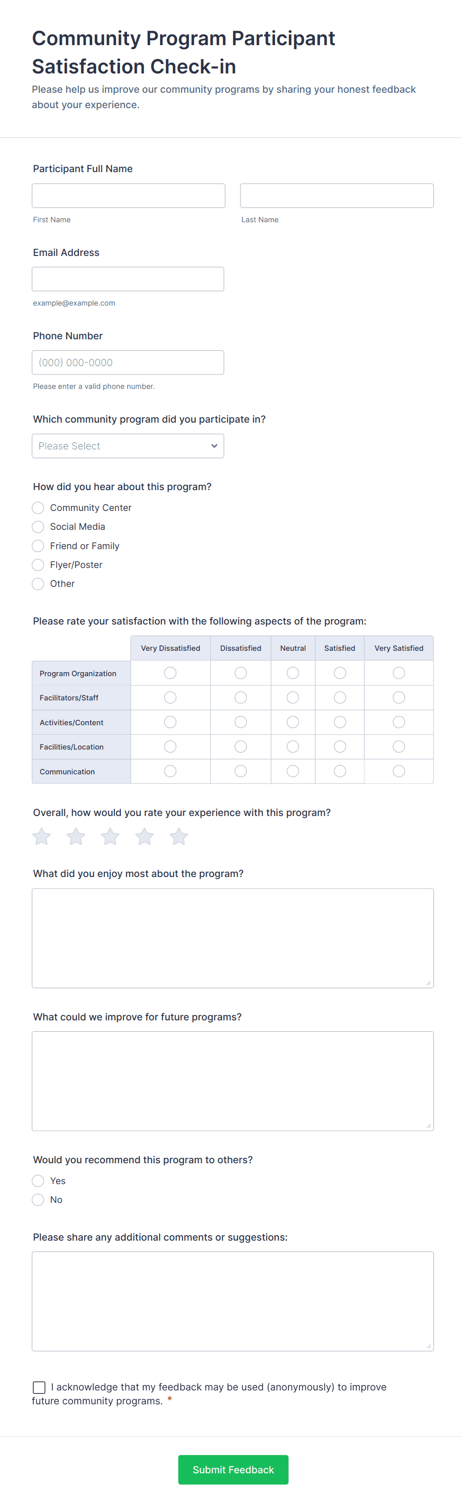 Create an anonymous feedback form in seconds with this ready-made template. Easy to customize and share. Works on any device. No coding knowledge required.