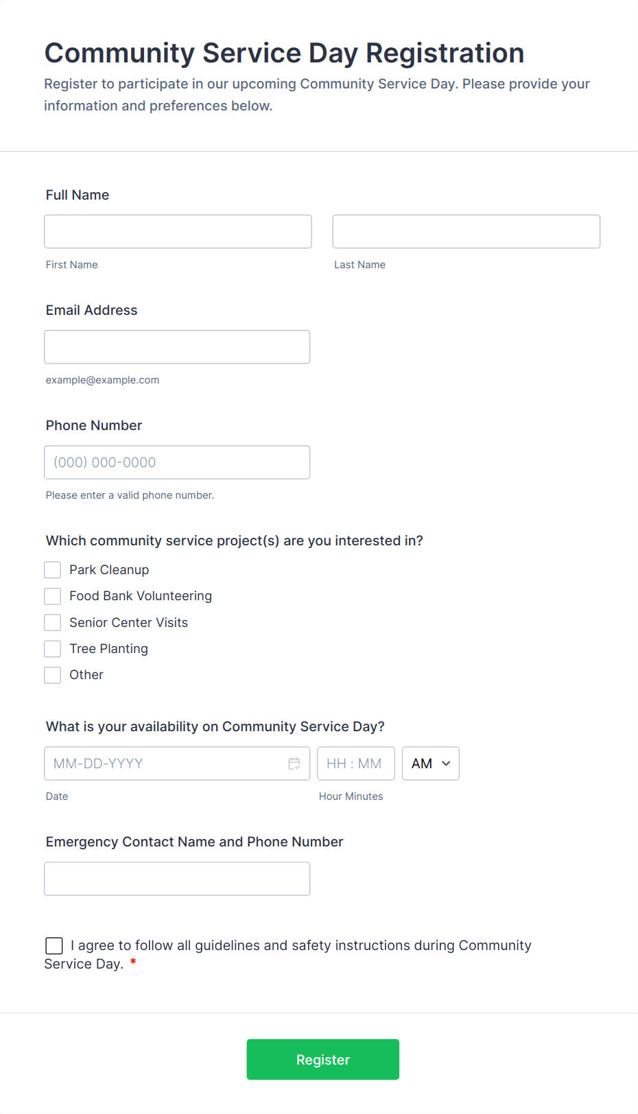 By following these steps, you can create a tailored Volunteer Registration Form that simplifies sign-ups, ensures you collect all necessary information, and helps you build a reliable volunteer database for your organization’s needs.