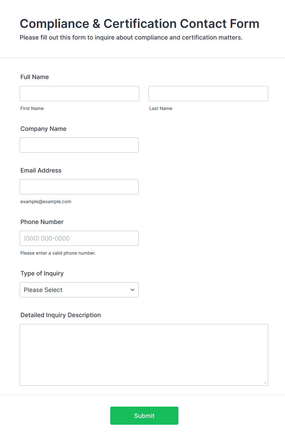 At a minimum, contact forms typically collect the user’s name, email address, and message. Depending on the use case, additional fields like phone number, inquiry type, or file uploads may be included.