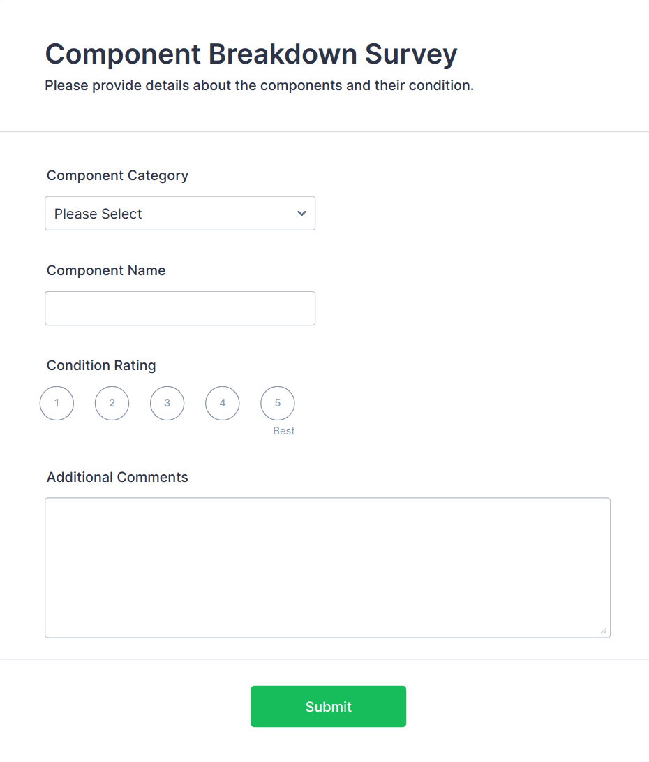 An asset survey is a form that workers fill out to get information about the status of certain assets at a certain location. Paperless documentation with Jotform!