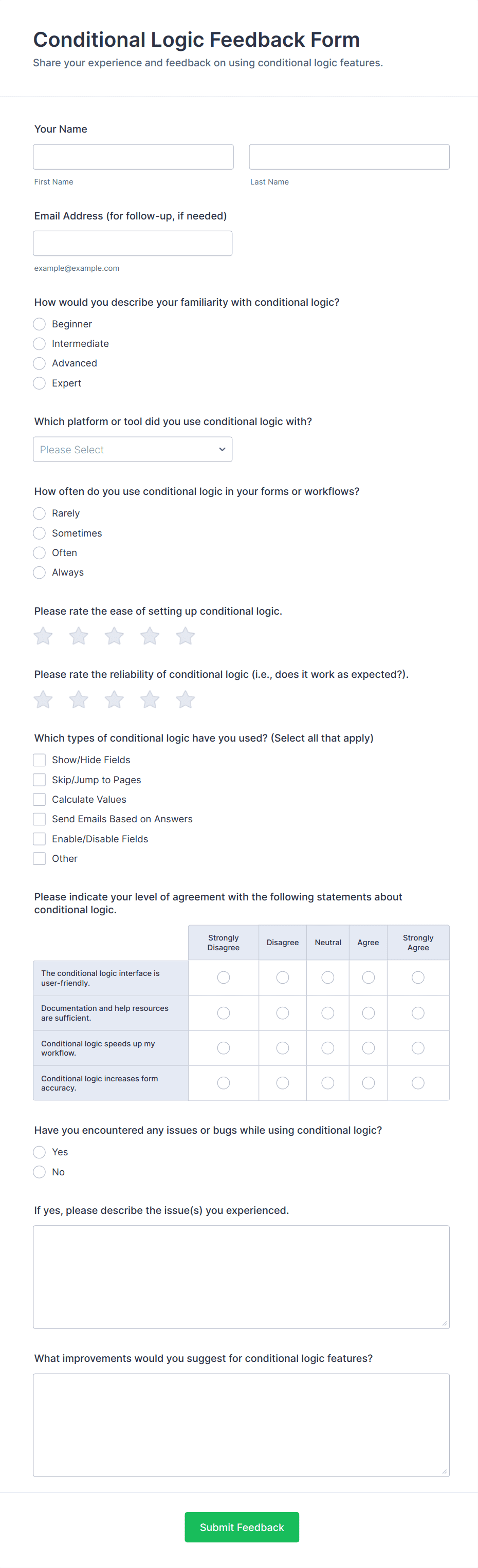 - Use conditional logic to show or hide questions based on previous answers, ensuring a personalized experience.