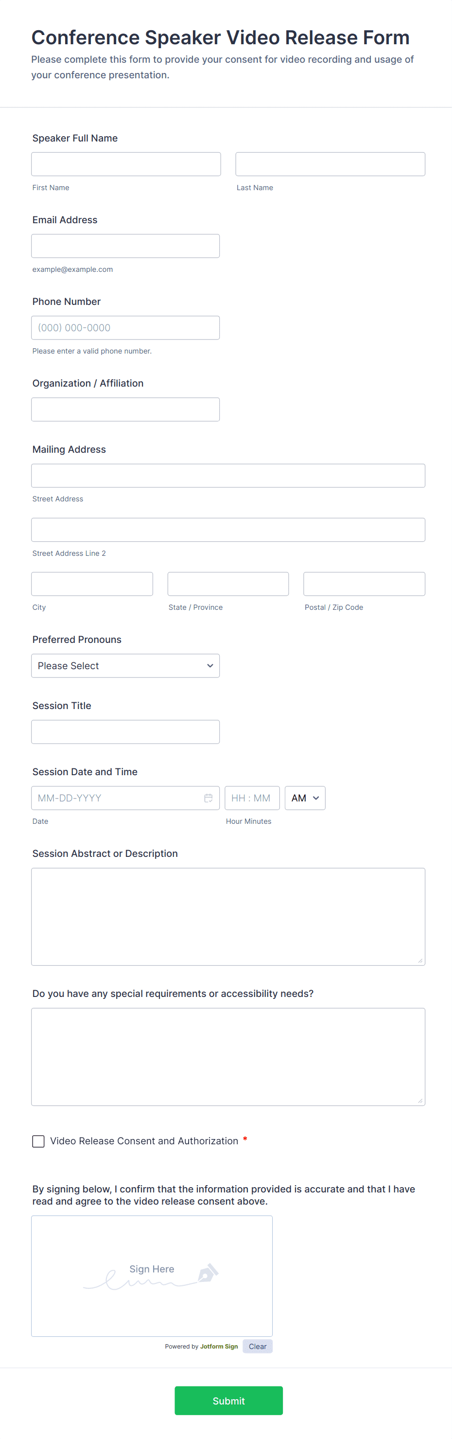 A media release form lets you collect and store information related to press releases and media releases. Focus on your next press release without worrying about losing a single piece of important information with Jotform!