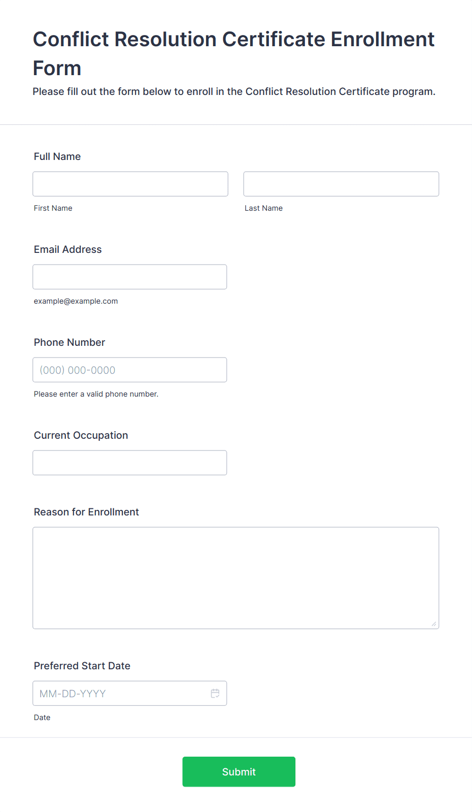 • For event or course registrations, include fields for session selection, preferences, or special requirements.