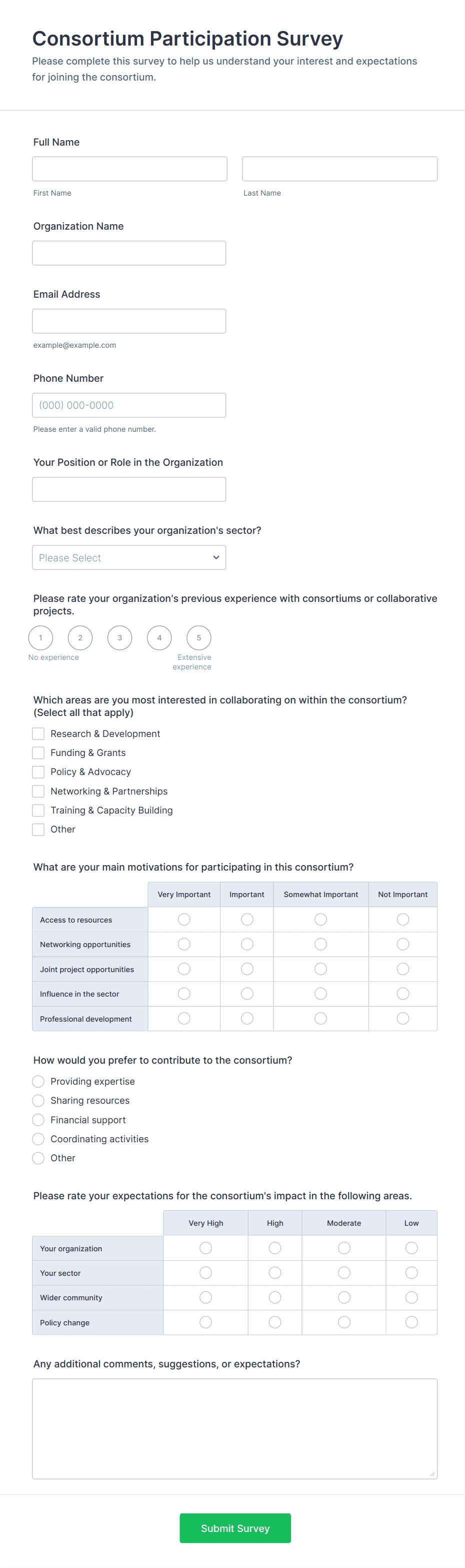 By following these steps, you can create a business survey form that is tailored to your unique needs, collects high-quality data, and supports informed decision-making across your organization.