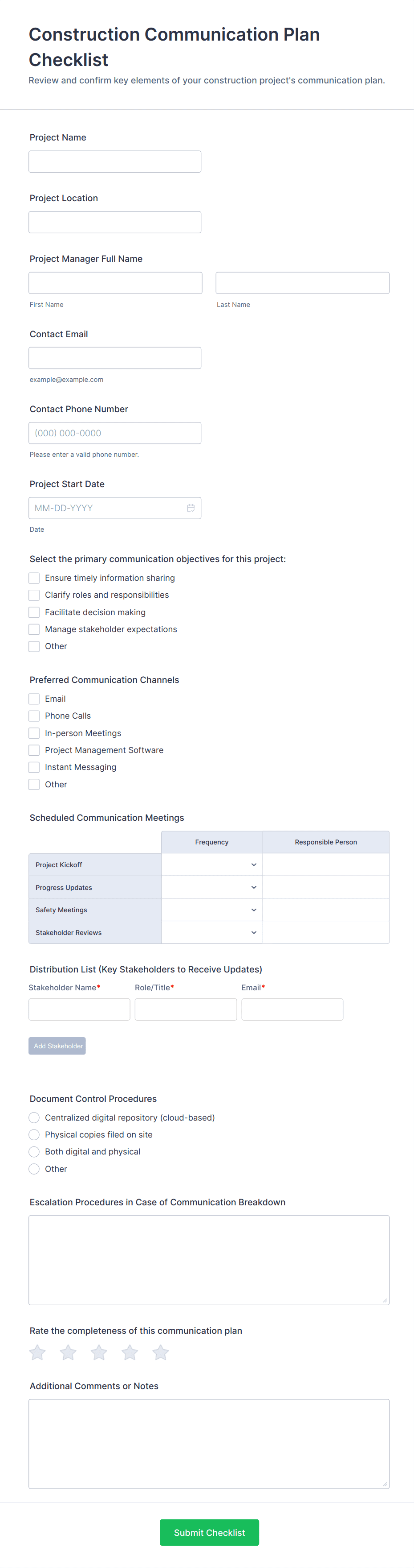 A Construction Phase Planning Form is a pre-designed template tailored to address the complex needs of project managers and contractors during the planning phase of their construction projects.