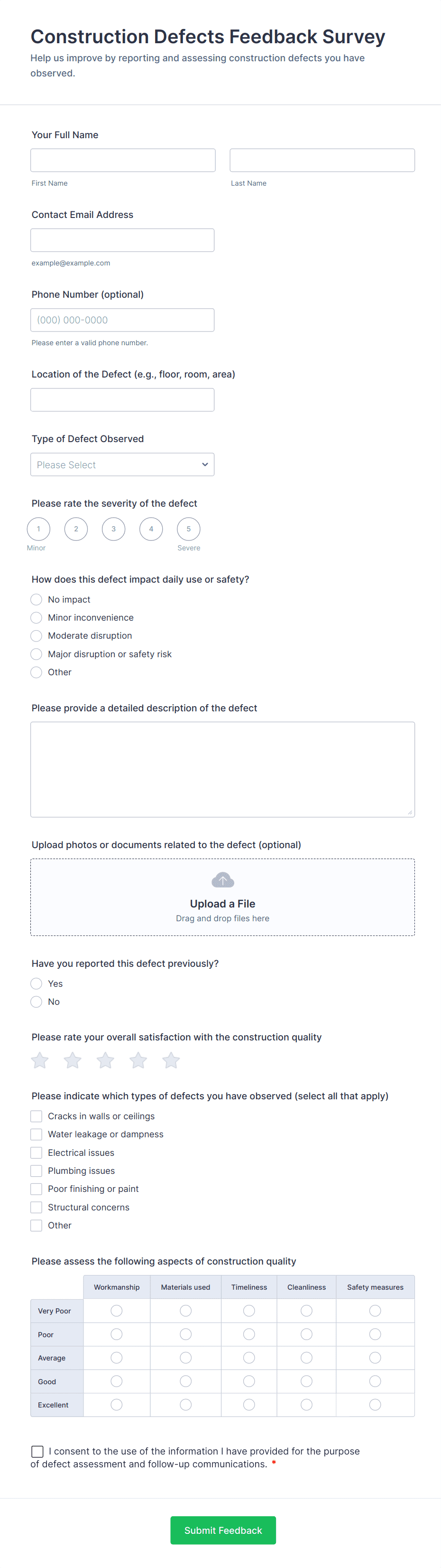Boost your business with Construction Forms that streamline your workflow and eliminate the need for messy paperwork. Whether you’re a contractor, developer, landscaper, or materials supplier, you can use Jotform to handle everything from work order requests and estimates, to safety inspections and jobsite checklists. Choose from our library of free, ready-made Construction Form templates to create reports, invoices, waivers, and contracts you can share with a link or embed in your company website for instant access from any device.