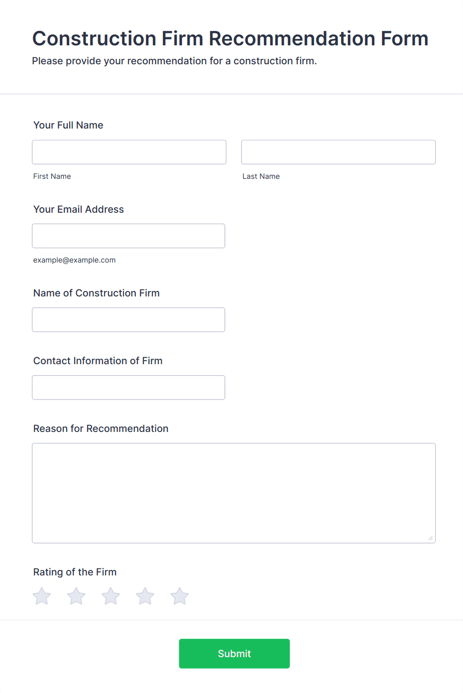 Construction Lead Generation Form Template helps construction companies collect project inquiries and contact details online to grow their lead pipeline.