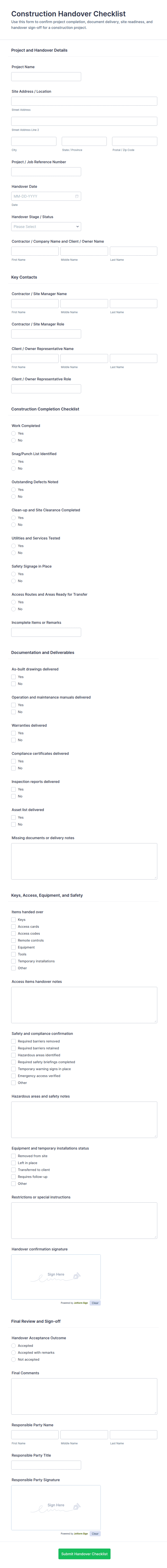 Construction Handover Form
