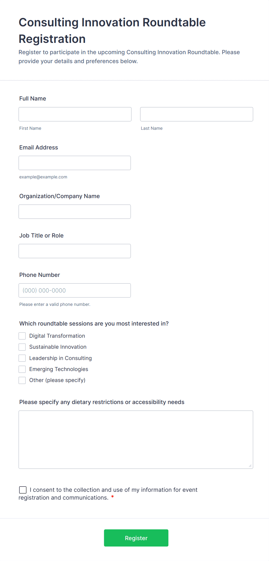 By following these steps, you can create a tailored Conference Registration Form that streamlines the sign-up process, ensures accurate data collection, and enhances the overall experience for both organizers and attendees.