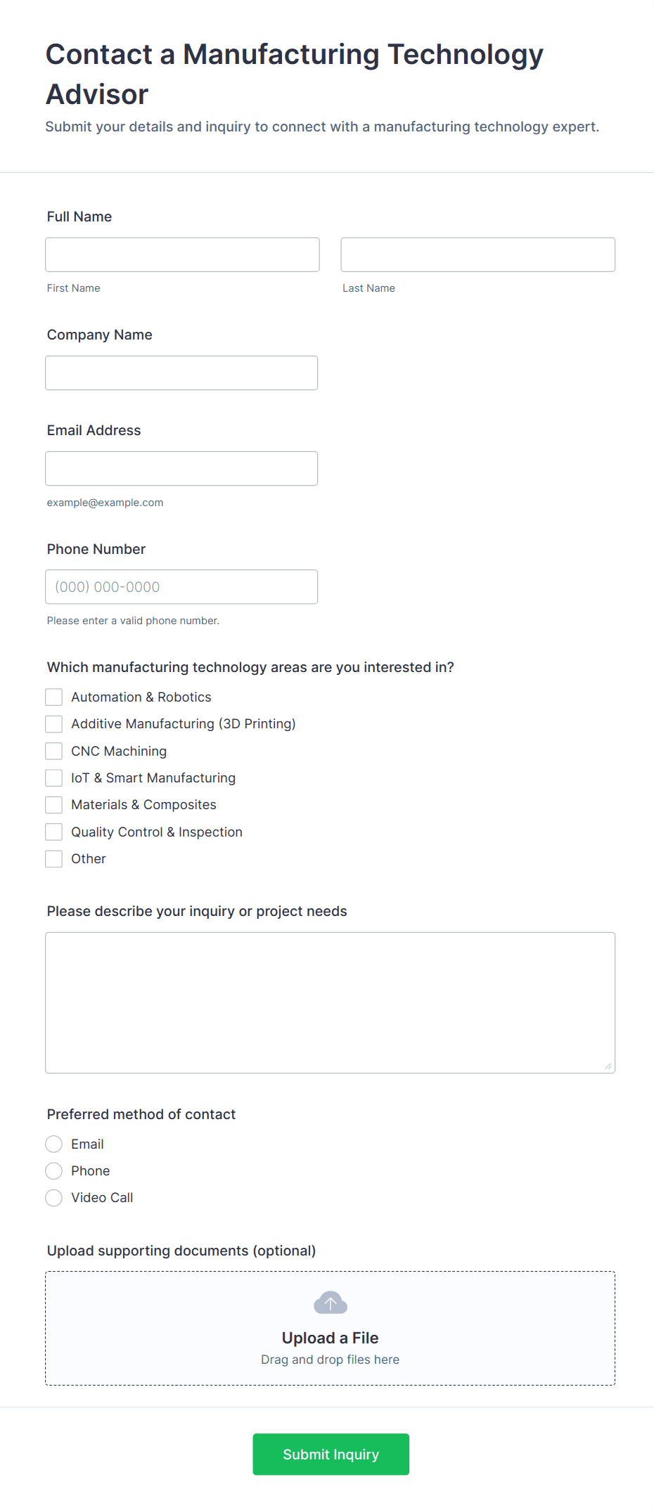 Customize these Manufacturing Forms with no coding required — just drag and drop to update the design to perfectly match your needs. You can add fields to collect payments and e-signatures, include your company logo and branding, and integrate with hundreds of other platforms to send form submissions to them automatically.