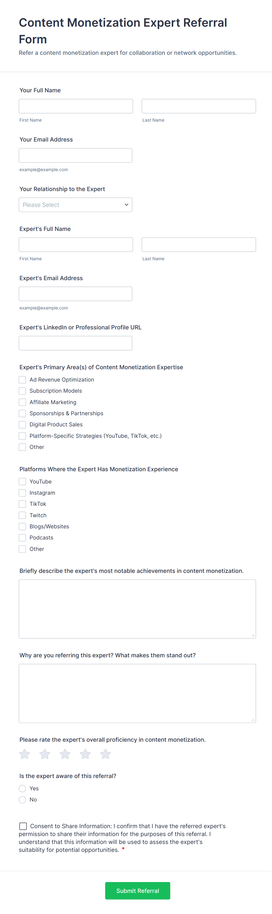 Consulting Client Referral Form Template