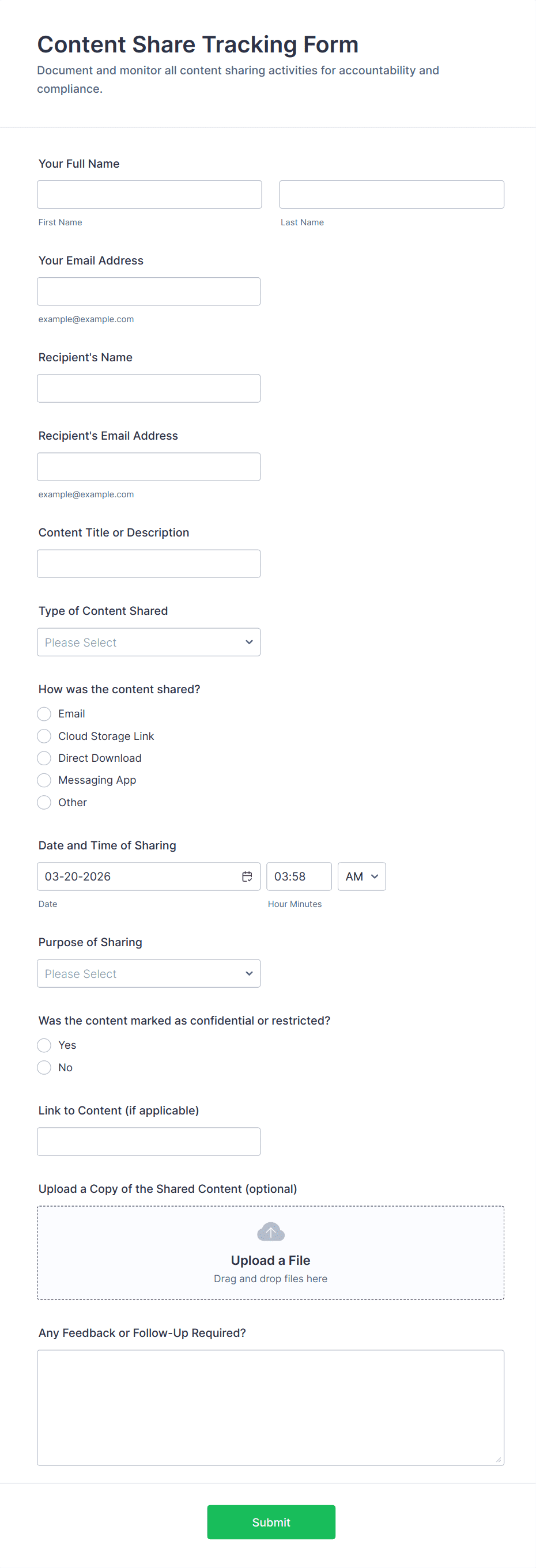 Tracking forms are versatile and can be adapted to a variety of scenarios, each with its own set of requirements and benefits. Here’s how tracking forms can be used, who might use them, and how their creation can differ based on the specific application: