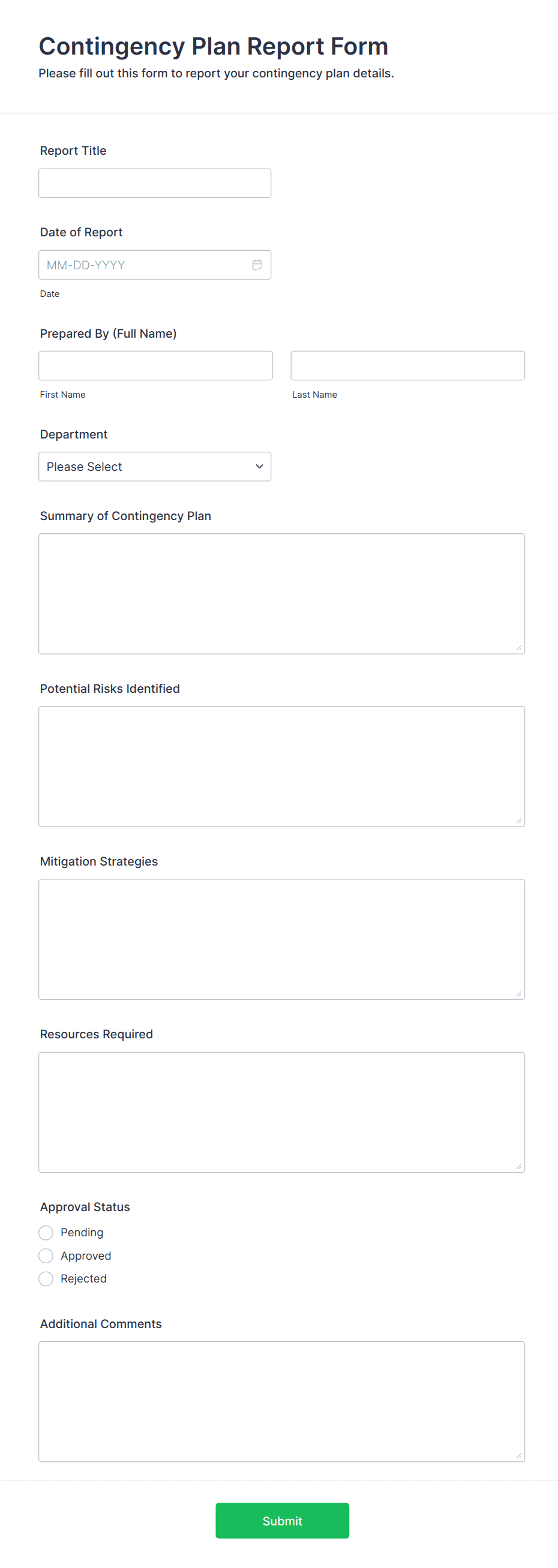 • Conditional Logic: Show or hide fields based on previous answers to streamline the reporting process.