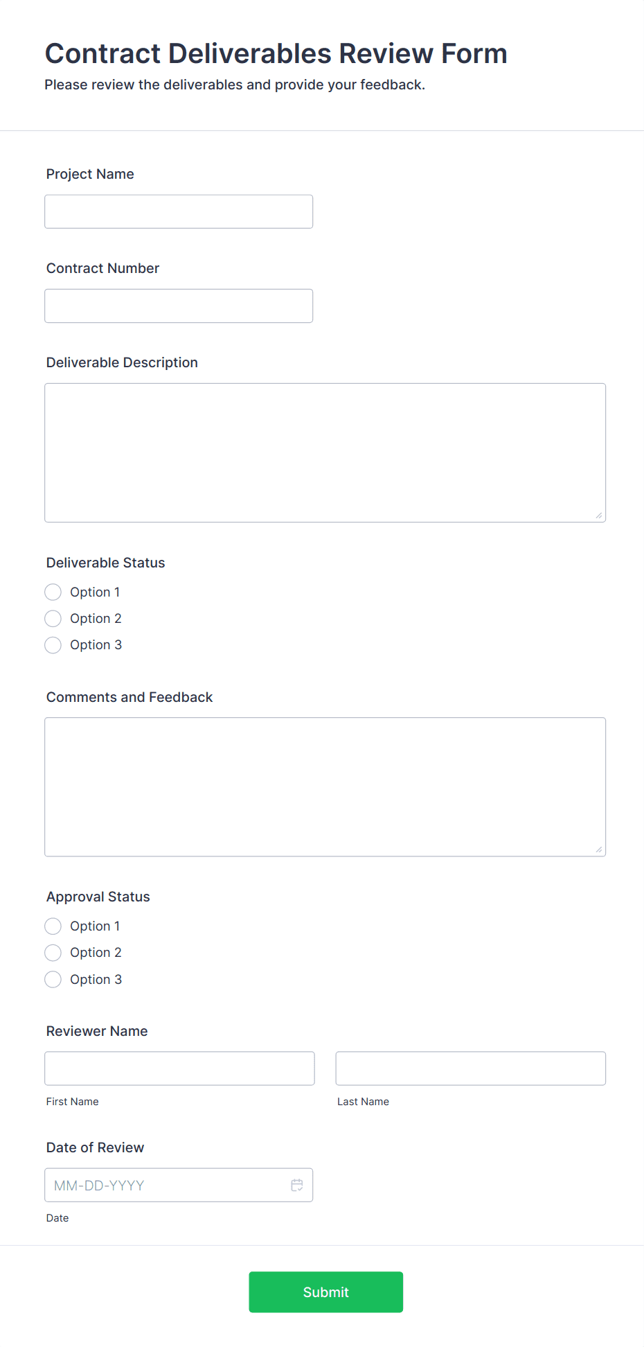 Submit designs through this free approval form. Clients can review and respond to entries instantly. Easy to customize, share, and fill out. No coding.