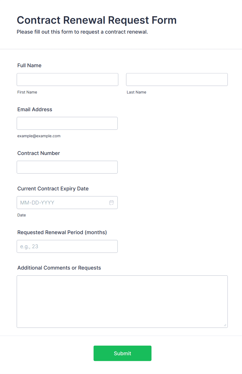 A business form template is a pre-designed digital form used to collect, process, and manage information for various business operations, such as client intake, employee onboarding, or order processing.