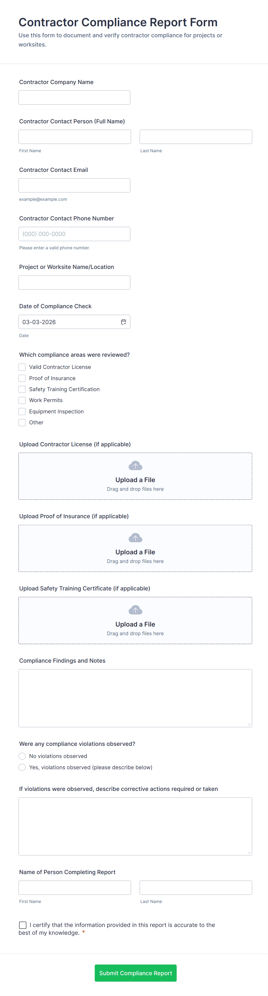 • The level of detail and required attachments (e.g., photos, signatures) can differ depending on compliance or documentation needs.