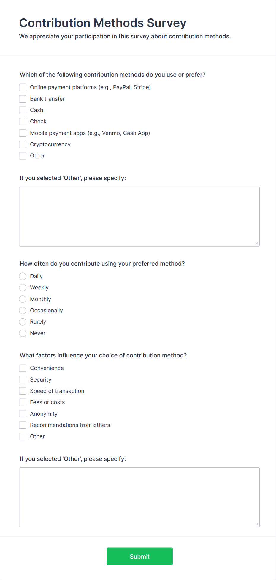 • Market Research Surveys: Collect data on consumer preferences, trends, and market demands.